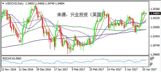 上周加元跌勢慘烈,油價(jià)的下跌給加元下行造成了巨大的壓力。上周五加元跌勢持續(xù)加劇,美元/加元繼續(xù)突破,最高觸及一個(gè)半月高位1.3524,并成功收復(fù)1.35整數(shù)關(guān)。上周五美國原油再次跌破50美元/桶,為兩周以來的首次。盡管OPEC有望延長減產(chǎn)的預(yù)期利好油價(jià),但美國原油產(chǎn)量創(chuàng)2015年8月以來的最高水平,并仍有上漲的跡象導(dǎo)致油價(jià)承壓。上周五公布的貝克休斯石油鉆井平臺數(shù)也顯示鉆井?dāng)?shù)量連續(xù)第14周增加。原油市場供過于求的陰影始終籠罩著油市。今日亞市美元/加元幾乎為受法國大選的影響,略微維持在1.35一線下方波動(dòng)。稍后關(guān)注美元和油價(jià)表現(xiàn)。