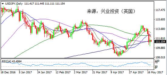 上周美元指數(shù)在特朗普“通俄門”和“泄密門”事件的背景下,導(dǎo)致市場的避險(xiǎn)情緒增強(qiáng),日元漲勢得到持續(xù)鞏固。上周五雖然避險(xiǎn)情緒有所緩和,但是美元指數(shù)依舊受到強(qiáng)烈拋售,導(dǎo)致美元/日元也受打壓,不過匯價(jià)的跌幅有所減小。美元/日元當(dāng)日在震蕩中小幅收跌,依舊持穩(wěn)于111關(guān)口上方收盤報(bào)111.16。今日亞市,日本公布的4月商品貿(mào)易帳大幅差于預(yù)期,美元/日元小幅上漲至111.48附近。日內(nèi)持續(xù)關(guān)注有關(guān)美國政局方面的消息和美聯(lián)儲官員的講話。