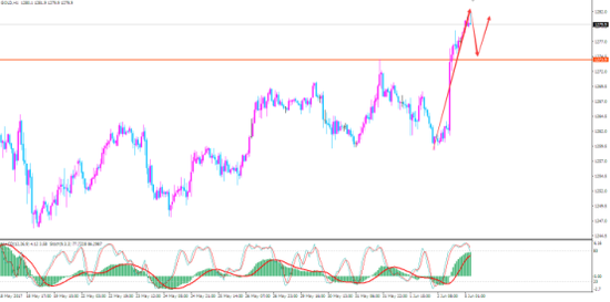周一(6月05日)亞市早盤,國際現(xiàn)貨黃金交投于1257美元/盎司一線,國際現(xiàn)貨黃金周五(6月2日)上漲至六周以來的高位,美市盤中最高上探至1279.10美元/盎司,金價又現(xiàn)一柱擎天,瞬間跳漲逾14美元,劍指1280美元/盎司。周五公布的美國非農(nóng)就業(yè)數(shù)據(jù)令人失望,美國5月非農(nóng)就業(yè)人口僅僅增加13.8萬人,失業(yè)率跌至4.3%,遠(yuǎn)低于經(jīng)濟(jì)學(xué)家預(yù)期,4月的數(shù)據(jù)也遭到下修,前兩月的增長并非預(yù)期中那么強(qiáng)勁,表明勞動力市場動能正在減少,也降低了6月加息的可能性。數(shù)據(jù)會導(dǎo)致投資者對美聯(lián)儲加息降低預(yù)期,但也有分析人士指出,4月數(shù)據(jù)較好,5月 屬于正常偏差,不會明顯影響美聯(lián)儲近期行動,美聯(lián)儲6月加息仍處于預(yù)計的軌道上。另外,黃金近期的上漲對在未來的三個月中,金價返回1200美元/盎司的空間非常充足,因世界經(jīng)濟(jì)表現(xiàn)依然良好,人們的風(fēng)險情緒開啟,通脹也趨于平緩,沒有真正的大通脹的威脅,政策正趨于穩(wěn)定。若美聯(lián)儲6月如期實(shí)施加息,黃金漲勢將會受到遏制。不過,目前金價已突破1270的關(guān)口,上漲動能短期內(nèi)仍然充沛,金價有望上探前期高點(diǎn)1295.37美元/盎司。