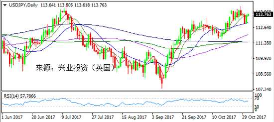 周二英央行有望在本周四的利率決議上加息的預期繼續(xù)在市場發(fā)酵,英鎊/美元多頭再接再厲,連續(xù)第二日大幅反彈,最高觸及半個多月高位1.3292,收于1.3288。不過投資者在決議公布之前還應該保持較謹慎的態(tài)度,因英國脫歐進程對英國經(jīng)濟前景構成不確定性。今日關注美國晚間的“小非農(nóng)”數(shù)據(jù),預計美國10月ADP就業(yè)人數(shù)將增長20萬;之后關注美聯(lián)儲決議釋放的鷹鴿基調(diào)。