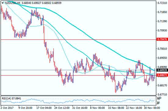 4小時(shí)圖上,紐元/美元近期持續(xù)走跌,目前在0.6867附近受到支撐,新西蘭央行的貨幣政策依然利空紐元,因而紐元依舊看跌,建議做空至0.6686目標(biāo)位。