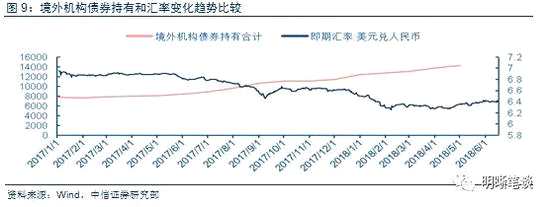 境外機構(gòu)在債券市場則是另外一番景象,雖然人民幣匯率在近期出現(xiàn)了一定的貶值,但是人民幣債券資產(chǎn)仍然具有吸引力。從近兩年的歷史來看,2017年9月份也一度出現(xiàn)了較為快速的貶值趨勢,但是境外機構(gòu)在這段時間反而加速了購債規(guī)模,即匯率的短期波動并沒有導致境外的債券型投資者減少境內(nèi)債券投資規(guī)模。而且,當前債券市場的流動性總體保持中性甚至偏寬松,而美國國債則仍將受到美聯(lián)儲貨幣政策收緊等負面沖擊,因此從資本利得的角度投資境內(nèi)債券市場也具備吸引力。值得一提的是,境外機構(gòu)在進入債券市場時可能會利用遠期或掉期來鎖定匯率風險,當前雖然即期匯率貶值幅度較大, 但是遠期點數(shù)反而出現(xiàn)了下降,對沖匯率風險的成本并無上升。這也反映出本次人民幣匯率走勢是貶值預期的釋放,而不是對未來貶值的恐慌。