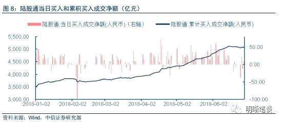 人民幣貶值對股票市場有一定的負面影響。外資在人民幣匯率貶值的情況下,在股票市場上有資金流出的情況。從陸股通的情況看,今年陸股通的累積買入成交凈額從年初一直呈持續(xù)上升的態(tài)勢,但是從六月下旬來看,累積成交凈額有所下降??梢娡赓Y在股票市場上對人民幣匯率的波動比較敏感。