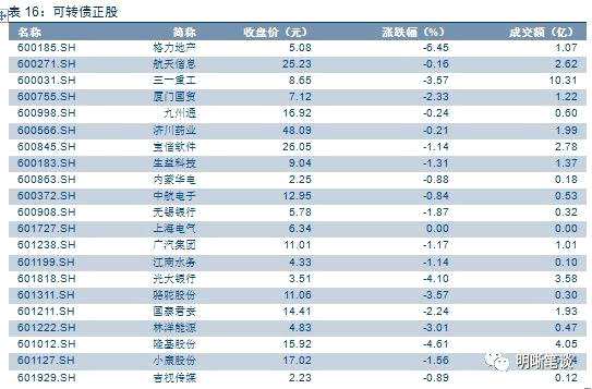 周一滬深兩市同向變動,尾盤上證綜指下跌2.52%,深證成指下跌2.13%。上周中證轉(zhuǎn)債指數(shù)在底部徘徊后錄得小幅反彈,個券漲多跌少,但受制較高的溢價率多數(shù)個券漲幅偏小,僅有少數(shù)彈性充足個券走勢搶眼獲得不俗收益。我們曾在近一個月周報中多次提示市場整體缺乏彈性,當下此現(xiàn)象并沒有明顯改善,雖然90-115股性估值處于合理區(qū)間之內(nèi)但滿足此區(qū)間標的數(shù)量處于歷史可比的低位,多數(shù)個券彈性并未處于最佳位置,換而言之考慮到目前轉(zhuǎn)債市場潛在上漲空間十足投資者大可以比正股多一份耐心。從權(quán)益市場來看,上周中小板及創(chuàng)業(yè)板逐現(xiàn)企穩(wěn)跡象,成交量也隨之上漲,可以更多關(guān)注相關(guān)轉(zhuǎn)債相關(guān)標的。我們判斷正股市場或逐步呈現(xiàn)分化的走勢,部分板塊有望先行觸底,重點關(guān)注醫(yī)藥、計算機、電子、軍工、新能源等板塊對應的轉(zhuǎn)債標的,當然首選彈性與空間俱佳的標的。此外值得注意的是中報期即將到來,可以適當關(guān)注業(yè)績超預期或穩(wěn)健的標的,受正股基本面支撐有望賺取收益。整體策略層面我們依舊強調(diào)關(guān)注低溢價率個券,高價低估值標的的強者恒強局面有望延續(xù)。具體標的建議關(guān)注東財轉(zhuǎn)債、三一轉(zhuǎn)債、國禎轉(zhuǎn)債、濟川轉(zhuǎn)債、太陽轉(zhuǎn)債、崇達轉(zhuǎn)債、星源轉(zhuǎn)債、雙環(huán)轉(zhuǎn)債、天馬轉(zhuǎn)債、新泉轉(zhuǎn)債。