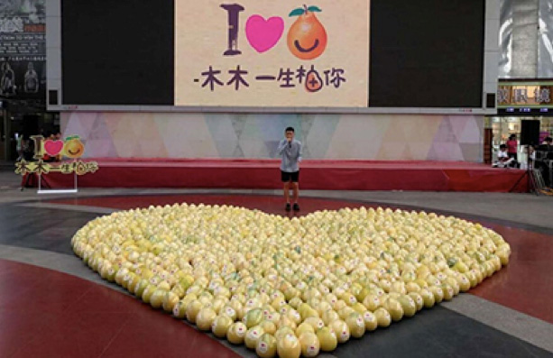 2016年9月4日下午,廣州一大三男生準(zhǔn)備了999個(gè)寫滿愛情宣言的柚子向暗戀一年多的大四女生表白:“從認(rèn)識(shí)你開始,我就喜歡上你了。在這么多人見證下,我要說(shuō)我喜歡你,你能做我女朋友嗎?”沒(méi)想到卻遭到拒絕。