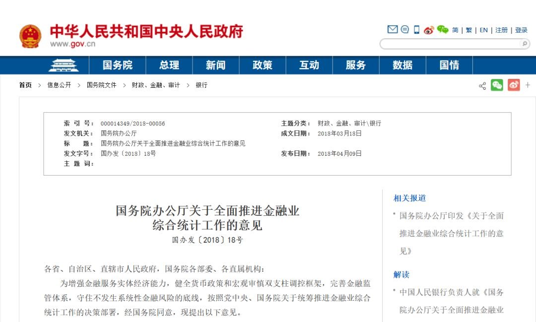 4月9日,國務(wù)院辦公廳發(fā)布了《關(guān)于全面推進金融業(yè)綜合統(tǒng)計工作的意見》(下稱《意見》),旨在加快推進金融業(yè)綜合統(tǒng)計,支持金融“服務(wù)實體經(jīng)濟、防控金融風(fēng)險、深化金融改革”。