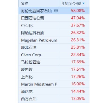 作為A股市場的大塊頭——中國石化(600028) 年內(nèi)漲幅也接近20%,10日漲停的通源石油內(nèi)年漲幅竟超過了25%。