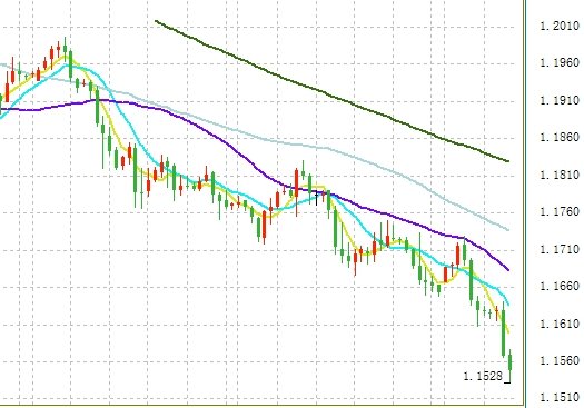 歐元跌穿1.16,最低下挫至1.1528,創(chuàng)下去年7月20日以來的最低水平