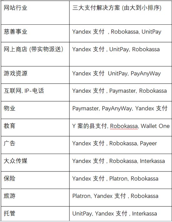 俄羅斯網(wǎng)上貿(mào)易支付的開通方式通常是網(wǎng)站找到支付服務(wù)商,服務(wù)商幫助開通網(wǎng)上支付。雖然相對于網(wǎng)上支付平臺總量來說,此類網(wǎng)站增長率不高(從2017年的66%到2018年底的67%),但絕對增長指標(biāo)卻已經(jīng)達(dá)到1.4萬個網(wǎng)站。前5大支付提供商自2017年沒有變化,變化的只是市場份額:排第一的是Yandex支付 ,占37.6%,第二的是Robokassa(8.7%), 第三為Payeer(4.4%), 第四是UnitPay(3.9%), 第五為PayAnyWay(3.3%)。