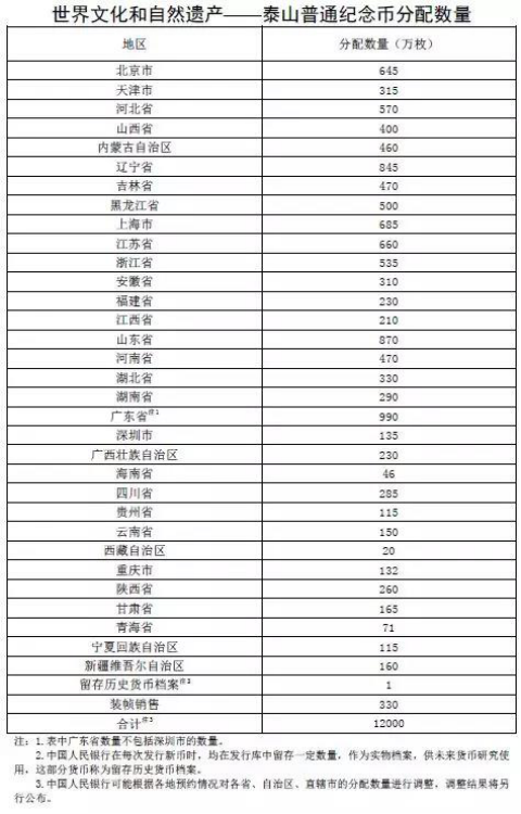 從泰山市的分配數(shù)量來(lái)看,廣東省是最多的990萬(wàn)枚,山東第二2870萬(wàn)枚,遼寧省第三845萬(wàn)枚,最少的就是西藏地區(qū)20萬(wàn)枚。