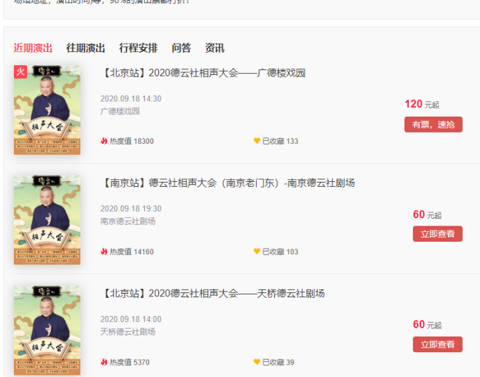 德云社門(mén)票多少錢(qián)一張?