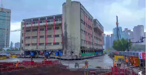 據(jù)媒體10月15日報道,2019年9月,太平洋, 上海新天地中中心項目開工建設(shè)。由于項目規(guī)劃的需要,喇格納小學(xué)需要從原址搬遷到西北部的新址。為了最大限度地保護(hù)這座歷史保護(hù)建筑,經(jīng)過專家的反復(fù)技術(shù)論證,最終決定采用國內(nèi)先進(jìn)的行走裝置平移技術(shù),用一次性的平移將整棟建筑就位,整個5層建筑重約7600噸,采用步行機(jī)將原址吊起,歷時18天。建筑主體舉起了“齊步走”,這樣平移路線就旋轉(zhuǎn)了一次,把平移從原址旋轉(zhuǎn)61.7米到西北方,舉起0.7米,旋轉(zhuǎn)21度。這一次,平移還創(chuàng)造了許多行業(yè)第一的新紀(jì)錄。