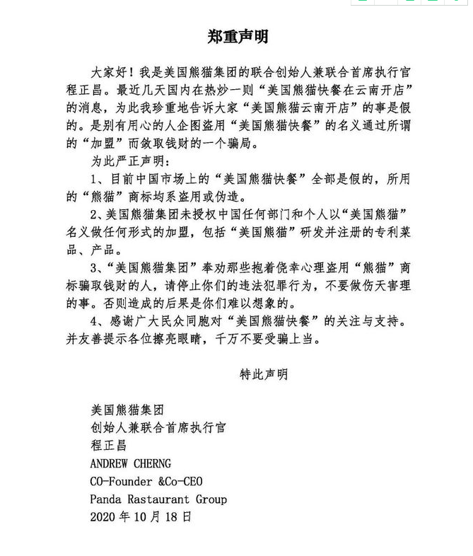 美國(guó)熊貓快餐從未授權(quán)在中國(guó)開(kāi)店這究竟是什么情況,云南熊貓快餐是假的嗎?