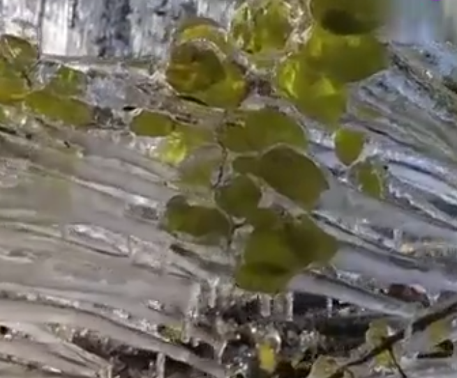 冰琥珀所謂的冰琥珀,就是液體冷凍凝固,中間包裹花草形成的冰景觀。這種奇特的自然景觀在農(nóng)村很常見。