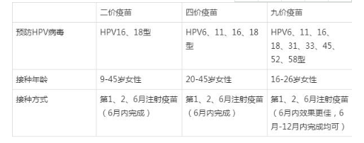 二價(jià)、四價(jià)、四價(jià)宮頸癌疫苗的主要區(qū)別是預(yù)防不同HPV類型,適用不同年齡段。該二價(jià)宮頸癌疫苗可預(yù)防16歲和18歲的18人乳頭瘤病毒感染,適宜年齡為9-25歲。四價(jià)宮頸癌疫苗在6、11、16、18歲時(shí)可預(yù)防18HPV感染,適宜年齡為20-45歲。9價(jià)宮頸癌疫苗可預(yù)防6、11、16、18、31、33、45、52、58的58HPV感染,適宜年齡為16-26歲。但無(wú)論哪種宮頸癌疫苗都不能預(yù)防所有高危型HPV感染,即使注射宮頸癌疫苗,也要定期進(jìn)行宮頸癌篩查。