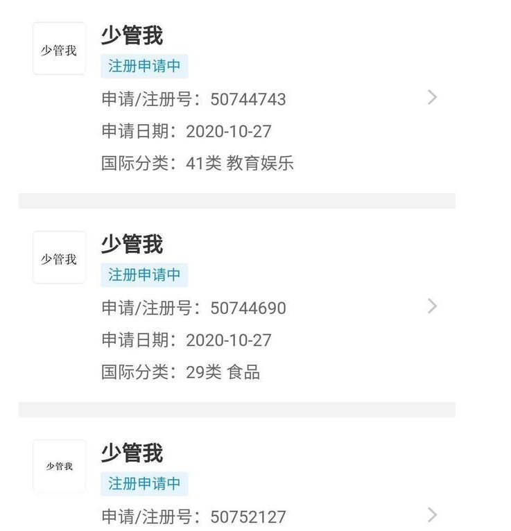 近日,周深作為大股東的上海勁焱文化傳媒有限公司,開(kāi)始注冊(cè)“少管我”商標(biāo),這個(gè)商標(biāo)的國(guó)際分類(lèi)包含了教育娛樂(lè)、食品、方便食品以及顏料油漆等,商標(biāo)數(shù)量總計(jì)45個(gè),但目前為止,商標(biāo)的狀態(tài)都是注冊(cè)申請(qǐng)中。