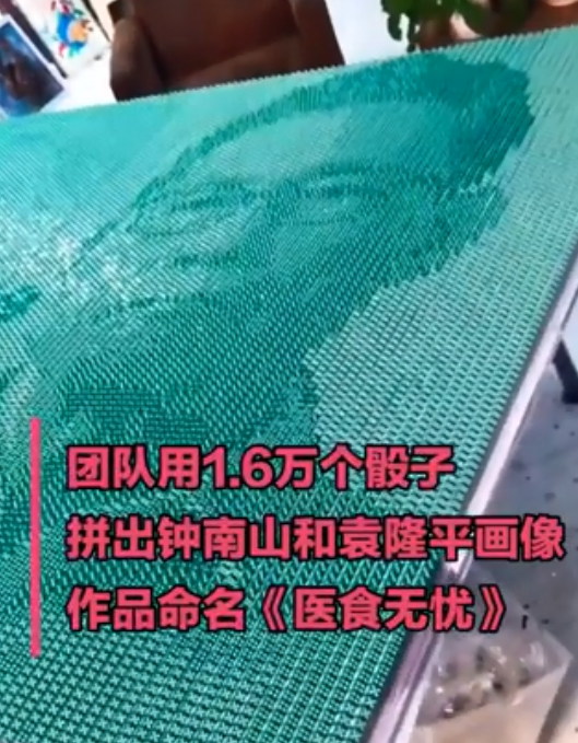 媒體25日消息,北京一團隊用1.6萬枚骰子拼出鐘南山袁隆平畫像,并將作品命名為《醫(yī)食無憂》。網友直呼太厲害了!