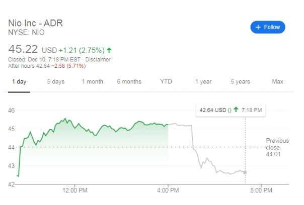 或受此消息影響,蔚來汽車盤后股價(jià)下跌超5%。截至發(fā)稿時(shí),蔚來汽車盤后股價(jià)報(bào)于42.63美元/股,下跌5.75%。