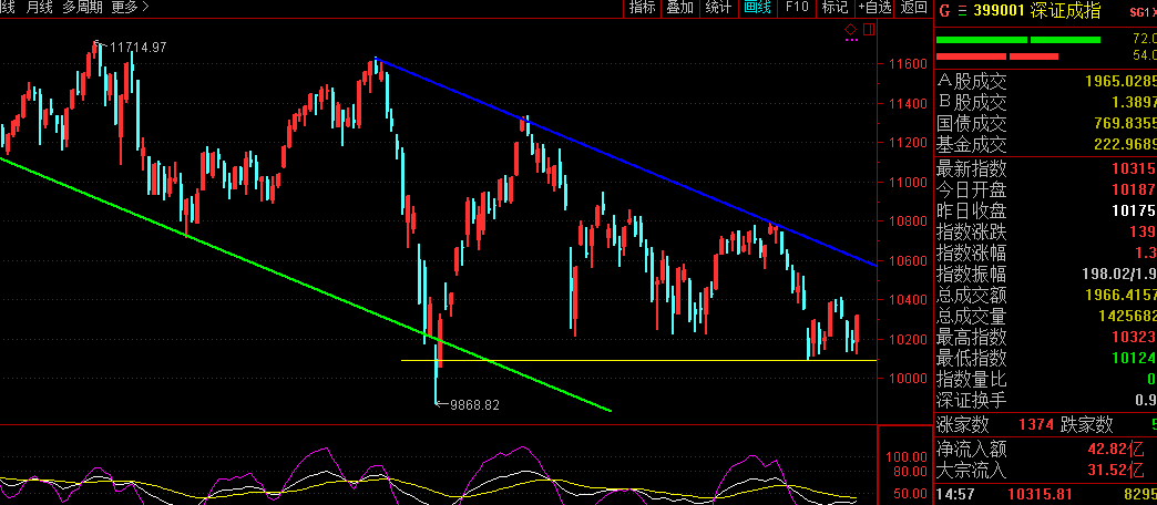 上證指數(shù)代表滬市大部分股的走勢(shì);深證成指代表大部分深市股的走勢(shì)。