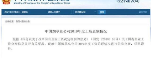 1月8日,財政部經(jīng)濟建設(shè)司公布中國煙草總公司2019年度工資總額情況,數(shù)據(jù)顯示,中國煙草總公司2019年度在崗職工年平均人數(shù)51.6萬人,在崗職工年平均工資為18.67萬元。