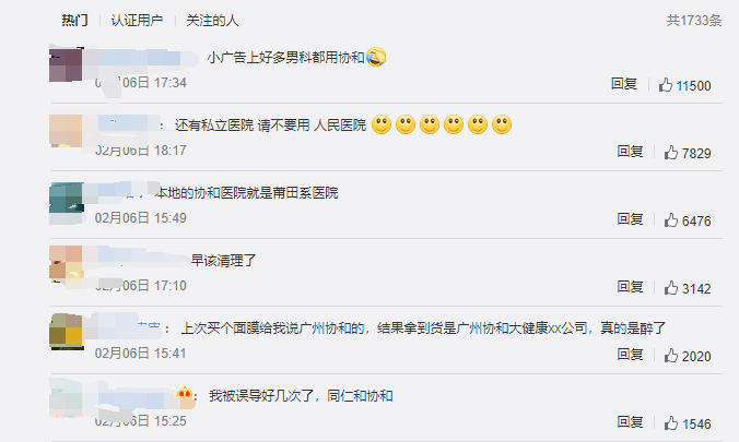 比如“地名+協(xié)和醫(yī)院”,像濟(jì)寧協(xié)和醫(yī)院、泰安協(xié)和醫(yī)院、撫順協(xié)和醫(yī)院這樣式兒的;比如“協(xié)和醫(yī)院+公司”,像青海友誼協(xié)和醫(yī)院有限公司、濟(jì)南協(xié)和醫(yī)院管理有限公司、莆田協(xié)和醫(yī)院投資有限公司這樣的。