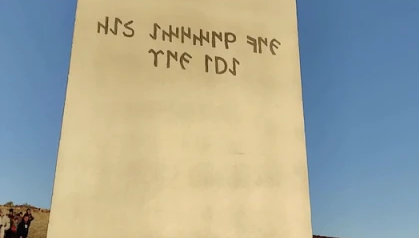 據(jù)當(dāng)?shù)孛襟w報(bào)道,這塊3米高的金屬巨石于當(dāng)?shù)貢r(shí)間2月5日在桑利烏爾法省“格貝克利石陣”遺址附近被發(fā)現(xiàn)。巨石筆直矗立在地面,上方有一行用古突厥語(yǔ)寫(xiě)成的文字:“想看月亮,就望天空?!?/p>