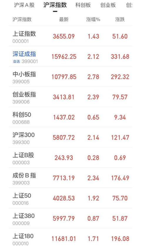 鼠年最后一個交易日,三大股指在短暫下探后一路走高。截至收盤,上證指數(shù)漲1.43%,報(bào)收3655點(diǎn),刷新5年來的最高紀(jì)錄;深證成指報(bào)收15962點(diǎn),漲2.12%;創(chuàng)業(yè)板指報(bào)收3413點(diǎn),漲2.39%。其中,深證成指盤中更一度站上16000點(diǎn)關(guān)口,為2015年6月以來首次。