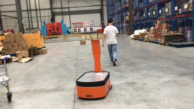 據(jù)現(xiàn)場情況觀察,在應(yīng)用AICRobo倉儲自主運(yùn)輸機(jī)器人的倉庫中,揀貨員只需站在開啟“智能跟隨模式”的倉儲自主運(yùn)輸機(jī)器人面前,使其識別要跟隨的揀貨員,隨后,機(jī)器人就會跟隨揀貨員到貨品區(qū)揀貨,揀貨完畢后,揀貨員再通過手持終端設(shè)備下達(dá)指令,機(jī)器人便會根據(jù)其自主導(dǎo)航功能回到打包臺區(qū)域,將貨品交給下一流程的工作人員。