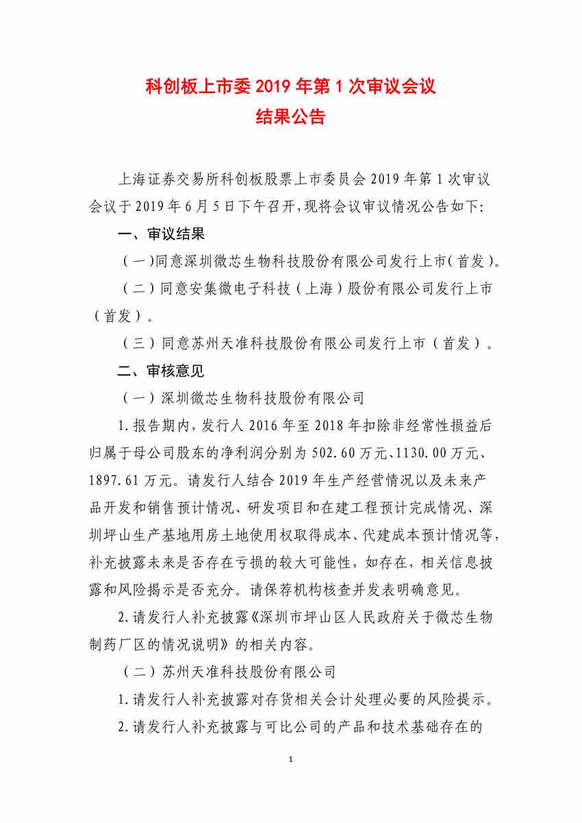 贏家財(cái)富網(wǎng)6月5日訊 據(jù)上交所網(wǎng)站消息,上交所今日發(fā)布科創(chuàng)板上市委2019年第1次審議會(huì)議結(jié)果公告。