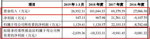 招股書中披露,2016-2018年及2019年1-3月(下稱“報告期”)硅產(chǎn)業(yè)的營業(yè)收入分別為2.7億元、6.94億元、10.1億元和2.7億元,但扣非后的歸母凈利潤則分別為-9081.32萬元、-9941.45萬元、-1.03億元和-2039.36萬元,累計虧損金額達(dá)3.14億元。