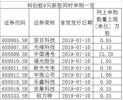 在之前三股發(fā)行后,7月3日杭可科技進行發(fā)行申購,7月8日瀾起科技將進行發(fā)行申購。僅就此來看,科創(chuàng)板的發(fā)行速度還在起步階段。不過,在7月10日這一天,科創(chuàng)板新股申購將迎來一次“狂歡日”。