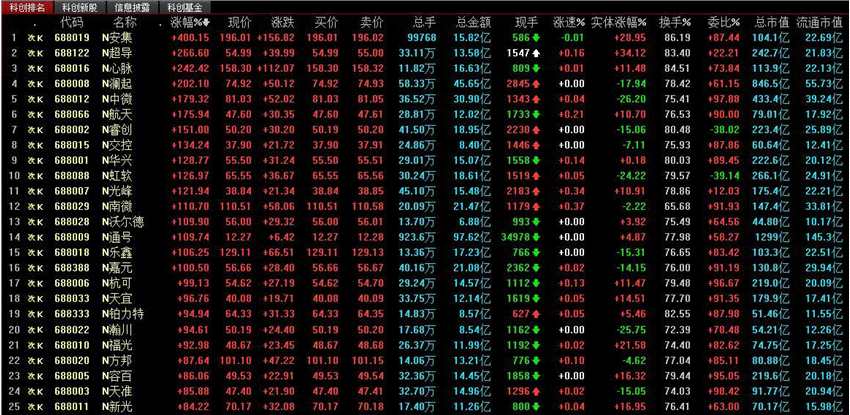 科創(chuàng)板首批25只股票上市首日表現(xiàn)