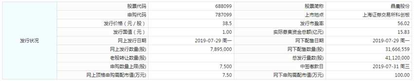 據(jù)交易所公告,晶晨股份今日申購(gòu),本次公開(kāi)發(fā)行股份41,120,000股,申購(gòu)代碼:787099 ,申購(gòu)價(jià)格:38.5元/股,單一賬戶申購(gòu)上限7500股,頂格申購(gòu)需配市值7.5萬(wàn)元。