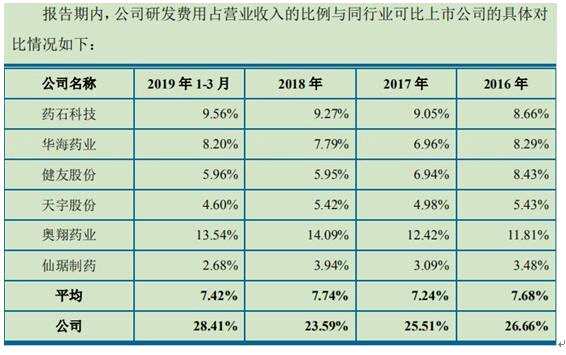 對(duì)照同行業(yè)可比上市公司【藥石科技(300725)、股吧】、華海藥業(yè)、健友股份、天宇股份、奧翔藥業(yè)、仙琚制藥來看,同期這6家公司的均值分別為7.68%、7.24%、7.74%,博瑞醫(yī)藥研發(fā)投入占營(yíng)收的比例遠(yuǎn)高同行均值。