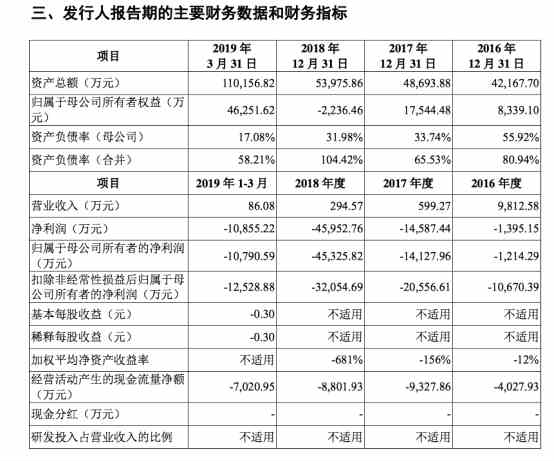 神州細(xì)胞2018年一度出現(xiàn)資不抵債情形。報(bào)告期各期末,公司的資產(chǎn)負(fù)債率分別為80.94%、65.53%、104.42%和 58.21%。