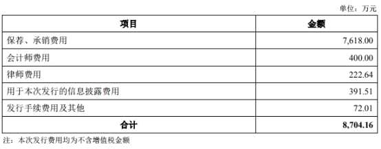 新光光電本次發(fā)行費(fèi)用共計8704.16萬元,其中中信建投作為保薦機(jī)構(gòu)和主承銷商獲得保薦、承銷費(fèi)用7618.00萬元。