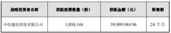 中信建投設(shè)立的子公司中信建投投資有限公司跟投參與新光光電IPO發(fā)行戰(zhàn)略配售,獲配105.01萬股,獲配金額4000.00萬元,跟投股份的鎖定期為24個月。