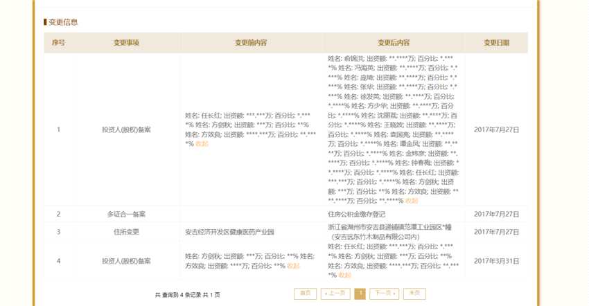 工商資料顯示,2017年3月、2017年7月份,安吉涌威投資人出資比例曾發(fā)生變化。