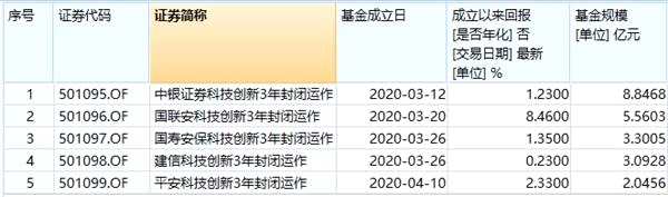 2020年以來,又有5只科創(chuàng)主題3年封閉基金新進成立,但成立時間恰逢全球股市下挫,故而基金規(guī)模普遍較低,其中平安科技創(chuàng)新3年封閉運作基金規(guī)模僅2.05億元,而第一批科創(chuàng)主題3年基金的募資規(guī)模平均在10億左右。