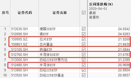 數(shù)據(jù)則顯示,4月份至今,股票型ETF漲幅超過20%的有10只,其中4只是半導(dǎo)體芯片相關(guān)的。
