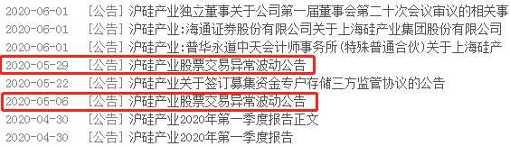 而在此前的5月29日, 以及更早的5月6日,滬硅產(chǎn)業(yè)曾兩次發(fā)布股價異常波動公告,只是這兩次并未出現(xiàn)“嚴(yán)重”兩個字。