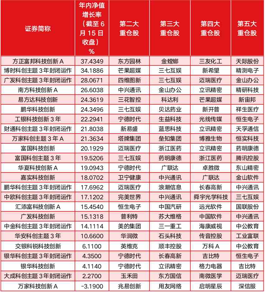 部分科創(chuàng)主題基金前五大重倉股一覽