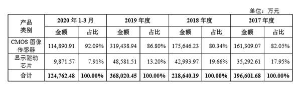 報告期內(nèi),格科微主營業(yè)務(wù)收入的構(gòu)成主要分為兩部分,其中,COMS圖像傳感器的收入占比超過八成,另外不足兩成收入則來自于顯示驅(qū)動芯片的收入。