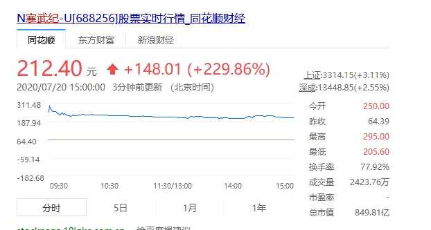 摘要: 7月20日,AI芯片第一股寒武紀(jì)登錄科創(chuàng)板,上市首日漲幅一路高開超350%,市值一度超千億。