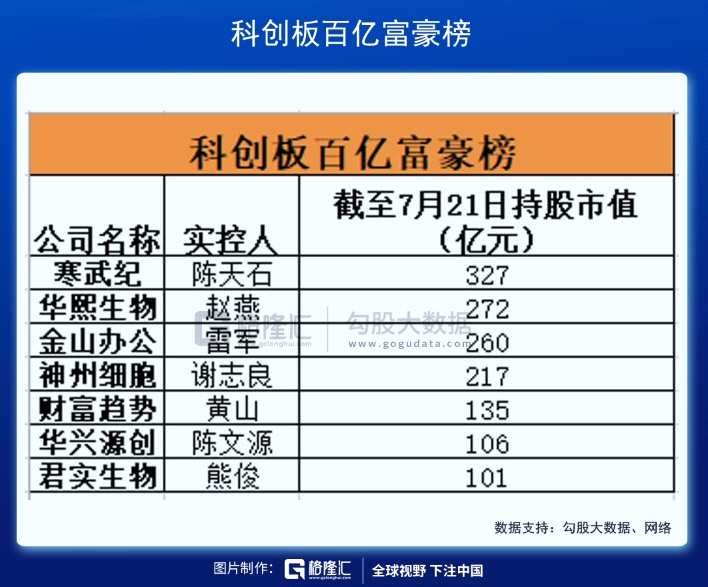 科創(chuàng)板除了是公司實現(xiàn)雄心壯志的千億土壤,還是百億富豪的“造夢工廠”。短短一年中,科創(chuàng)板已經(jīng)實現(xiàn)了7個人的百億富豪夢。