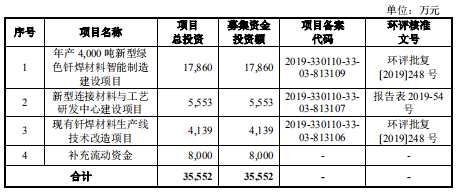 華光新材最終募集資金凈額較原計(jì)劃少3638.97萬元。華光新材8月13日發(fā)布的招股說明書顯示,公司計(jì)劃募集資金3.56億元,分別用于年產(chǎn)4,000噸新型綠色釬焊材料智能制造建設(shè)項(xiàng)目、新型連接材料與工藝研發(fā)中心建設(shè)項(xiàng)目、現(xiàn)有釬焊材料生產(chǎn)線技術(shù)改造項(xiàng)目、補(bǔ)充流動(dòng)資金。