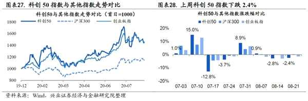 科創(chuàng)50上周下跌2.4%。上周科創(chuàng)50從1484.0降至1447.7,跌幅2.4%;與之對應(yīng),滬深300上升0.3%,創(chuàng)業(yè)板指下跌1.4%。