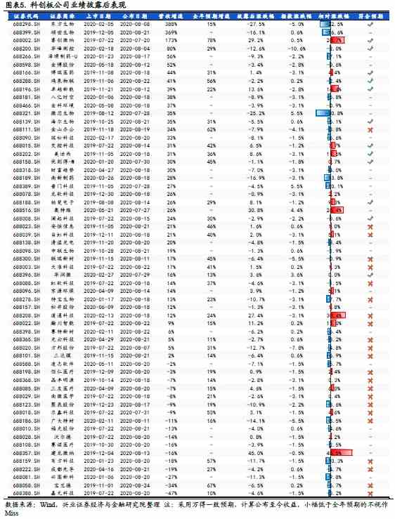 1)營收增速方面,32%的科創(chuàng)板公司營收同比負增長,49%的科創(chuàng)板公司營收同比增速在20%以上。
