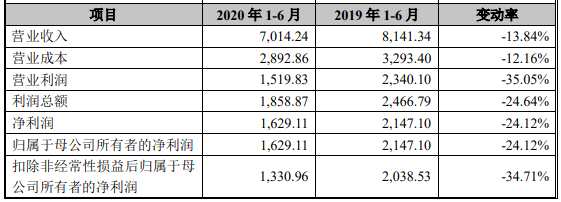 2020年1-6月,天臣醫(yī)療實(shí)現(xiàn)營(yíng)業(yè)收入7014.24萬元,較去年同期下滑13.84%;歸屬于母公司所有者的凈利潤(rùn)為1629.11萬元,較去年同期下滑24.12%;扣除非經(jīng)常性損益后歸屬于母公司所有者的凈利潤(rùn)為1330.96萬元,較去年同期下滑34.71%;經(jīng)營(yíng)活動(dòng)產(chǎn)生的現(xiàn)金流量?jī)纛~為1547.06萬元,較去年同期增長(zhǎng)33.31%。