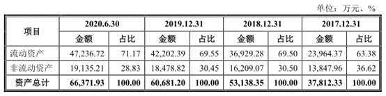 2020年上半年資產(chǎn)負債率53% 2017年至2020年6月30日,海泰科總資產(chǎn)分別為3.78億元、5.31億元、6.07億元、6.64億元,總負債分別為2.80億元、3.06億元、3.27億元、3.53億元。